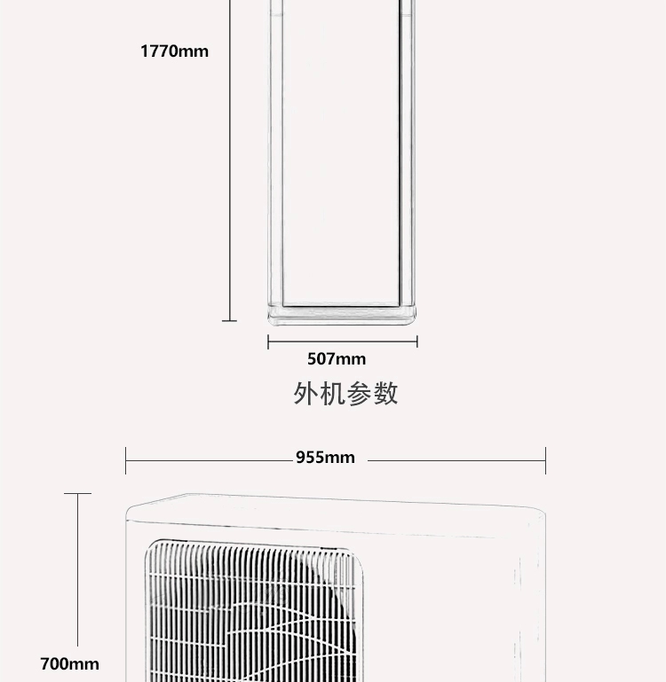 | 產(chǎn)品型號 | ERR | 適用面積㎡ | 產(chǎn)品尺寸(室內(nèi)/外) (mm) | ||